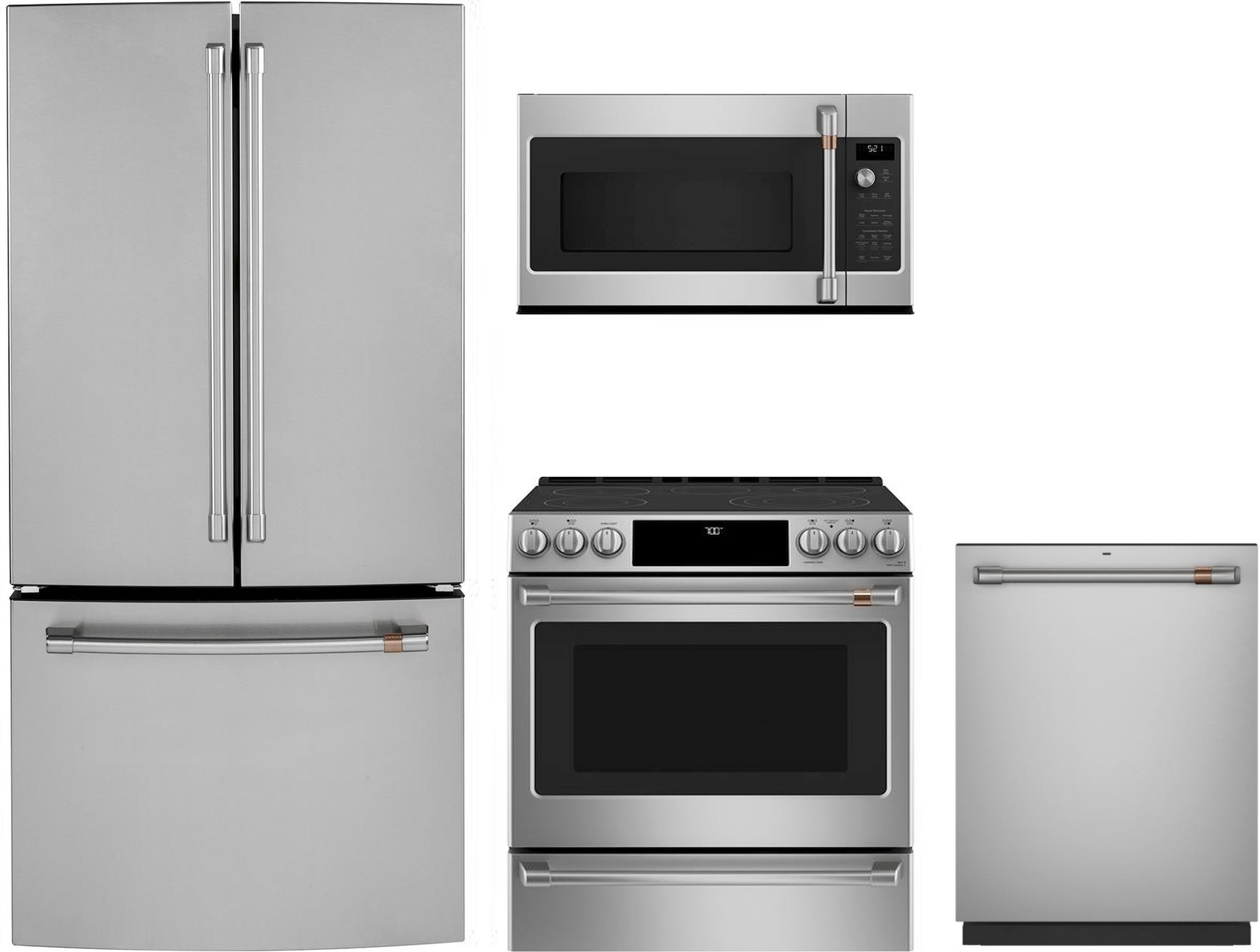 Café™ 4 Piece Kitchen Package-Stainless Steel with counter depth french door refrigerator, slide in electric range , built in dishwasher, and over the range microwave ovenRead More