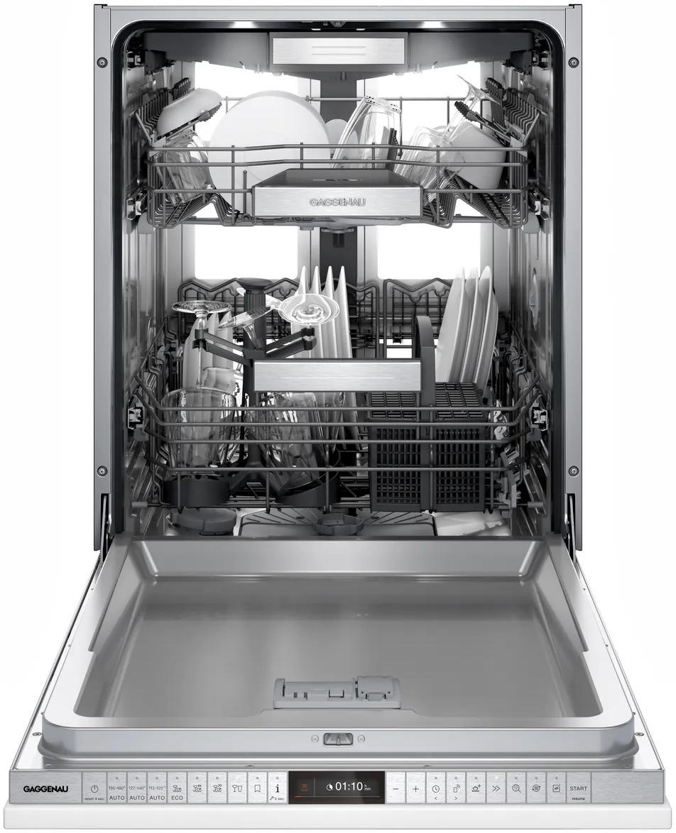 Gaggenau 400 Series 24" Panel Ready Top Control Built In Dishwasher features optimal protection for sensitive glassware, flexible basket system, illuminated interior, push-to-open function, and is very quiet at 42 dB.Read More