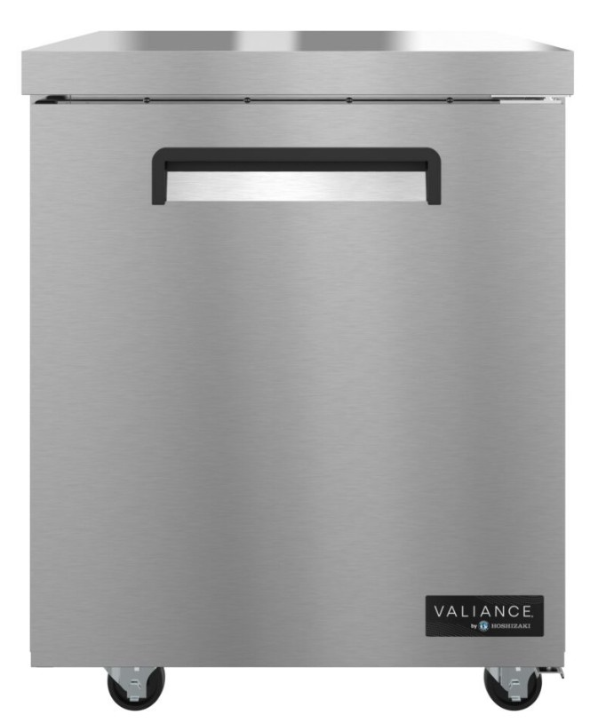 The VUR27A Valiance® Series undercounter single section refrigerator with a stainless door is a space saving workhorse. Engineered to maintain food safe temperatures in 100°F ambient conditions and with a net capacity of 6.33 cubic feet, this efficient undercounter refrigerator with front airflow design is perfect for hot/tight kitchens.Read More