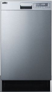 Summit's selection of European dishwashers are carefully designed and constructed for the optimum customer experience, with ENERGY STAR certified performance and user-friendly features. Sized at just 18 inches wide and 32.35 inches high, the DW18SS31ADA is a built-in dishwasher designed for an easy fit under lower ADA compliant counters in smaller kitchen spaces. The stainless steel door features an attractive horizontal grain. Alternatively, customers can remove the door wrap and add their own overlay panel for a custom look. The front control panel ensures intuitive operation, with large touch buttons and an easy-to-read key printed on the top panel. Wash programs include a heavy duty cycle for pots and pans, a regular wash function, Rinse & Hold, self-clean cycle, a 58-minute Quick & Dry setting, and Quick Wash for smaller loads that can be cleaned in 35 minutes. You can also specify a half load, extra rinse, extra drying, or rapid cleaning. Automatic detergent detection allows the dishwasher to sense the type of detergent in use, adjusting the washing program and drying system for the best performance. A time delay function allows you to program your wash cycles up to 24 hours in advance to best suit your schedule. The screen will also display indicators for softening salt, rinse aid, water cutoff, and overflow. Inside, the DW18SS31ADA features a stainless steel interior for lasting durability. Quality insulation helps to ensure a quiet 49 db performance. This unit features two slide-out racks to wash up to 8 place settings. The upper rack is best suited for cups and other lighter items, with adjustable side tines that make it easier to accommodate tall glasses or to stack smaller mugs. The lower rack is ideal for plates, pots, and other heavier soiled items. A removable cutlery basket with six sections makes it easy to keep your utensils together for quicker storage after a wash. With its convenient sizing, energy efficiency, and versatile design, the DW18SS31ADA is the ideal dishwasher for smaller kitchens with size restrictions.